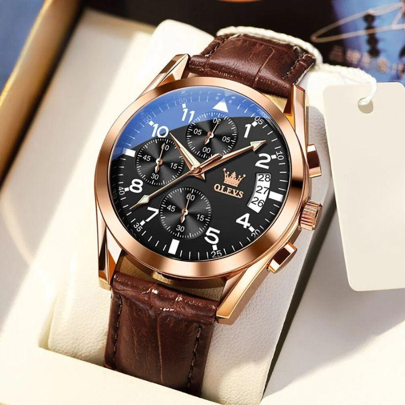 Um homem confiante não precisa dizer muito — seu relógio faz isso por ele. Com o OLEVS Luxury, cada detalhe comunica elegância e autoridade. O design minimalista, aliado à robustez do cronógrafo, reflete a personalidade de quem está sempre um passo à frente. Este modelo é mais que um acessório: é uma extensão da sua identidade.